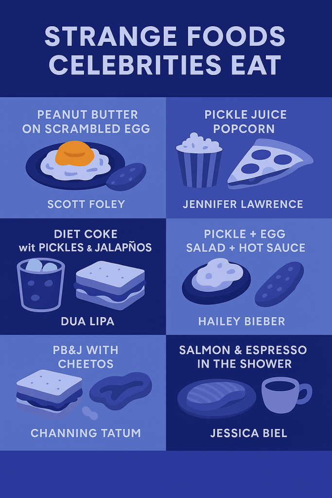 | Celebrity Name | Bizarre Food Favorite | Source |